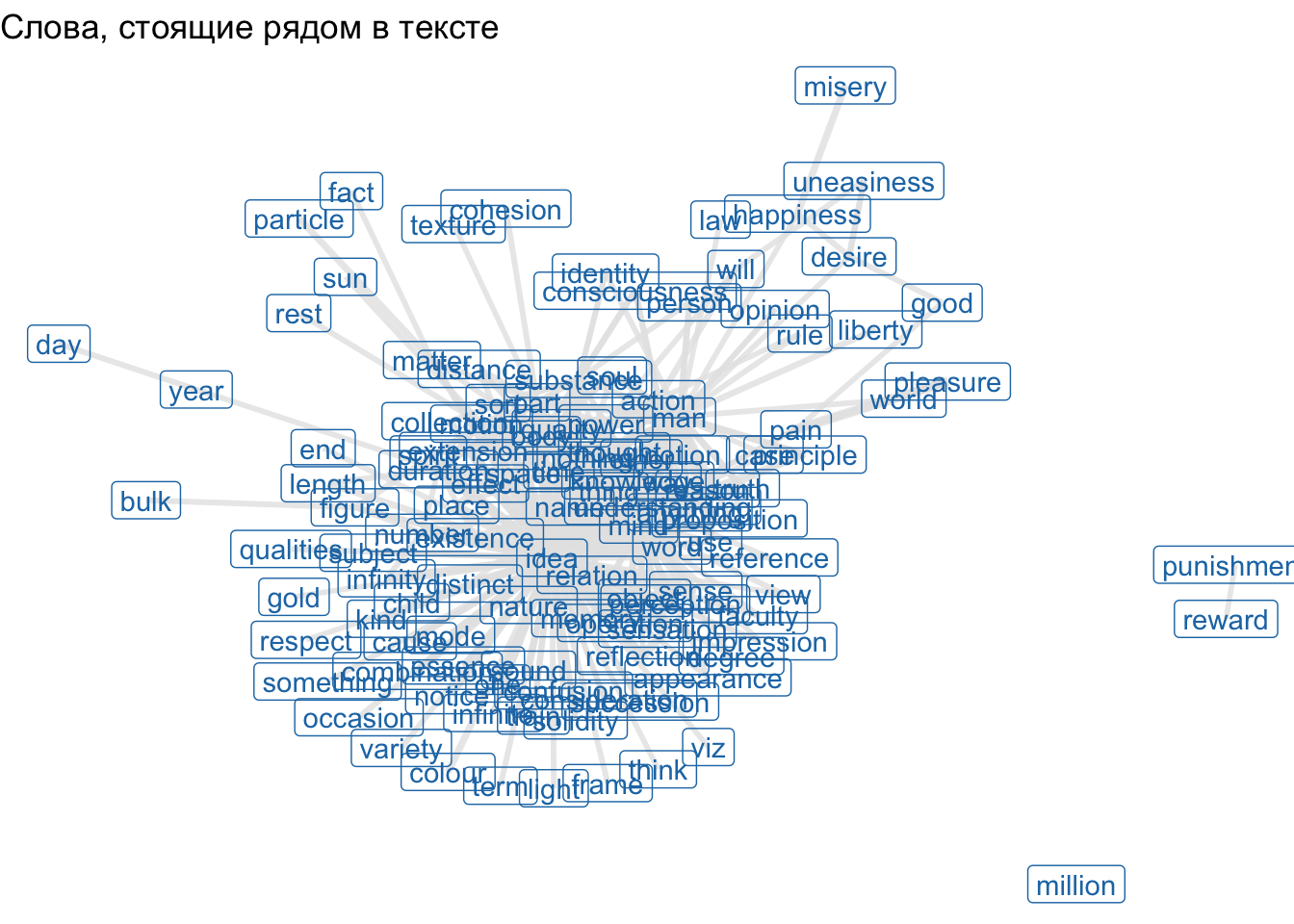 Функция cooccurence() из пакета udpipe позволяет выяснить, сколько раз некий термин встречается совместно с другим термином, например: