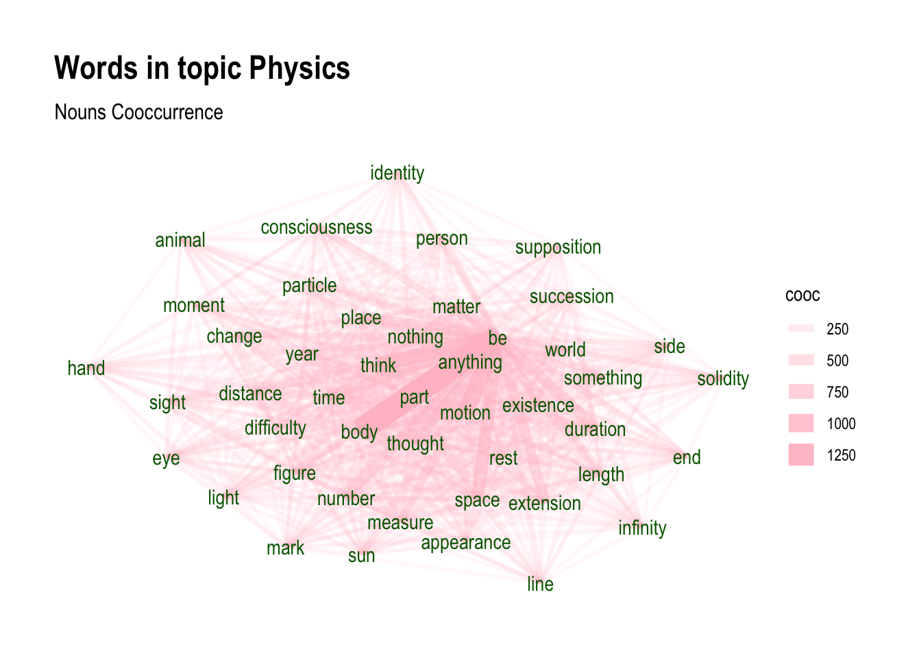 labs(title = "Words in topic Physics ", subtitle = "Nouns Cooccurrence")