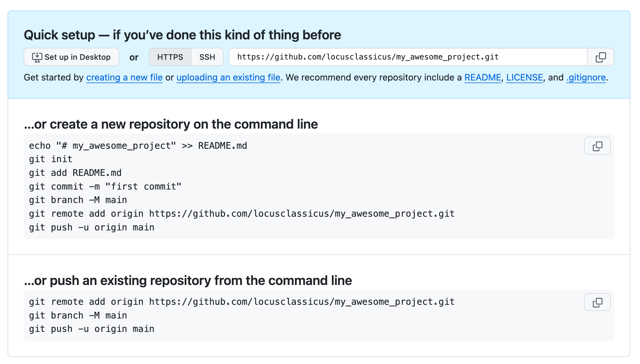 Выполняйте код в терминале построчно. Также git попросит вас выполнить следующую команду: git push --set-upstream origin main.