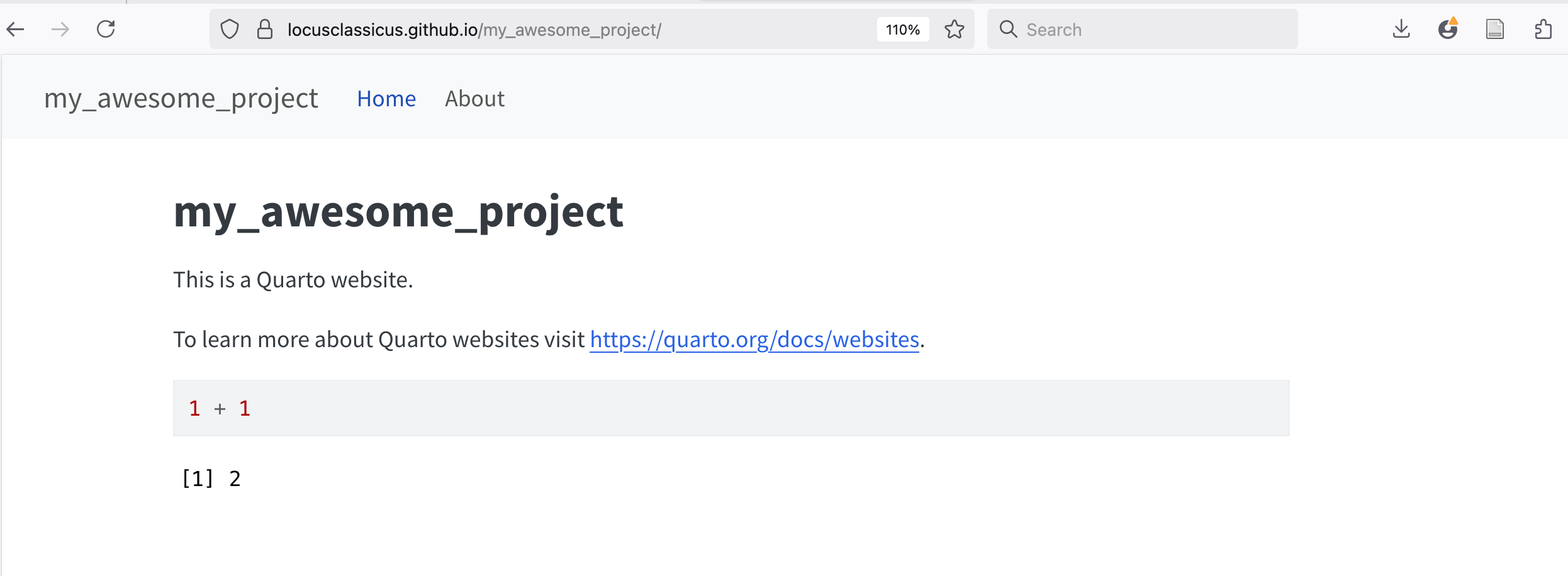 У вашего сайта пока всего две страницы, About и Index. Загляните в файл _quarto.yml, чтобы в этом убедиться. Также отредактируйте файл _quarto.yml, указав путь для рендеринга html-файлов.