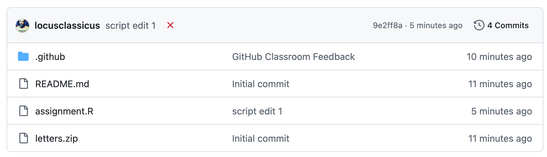 Если тесты не пройдены, напротив коммита будет красный крест.